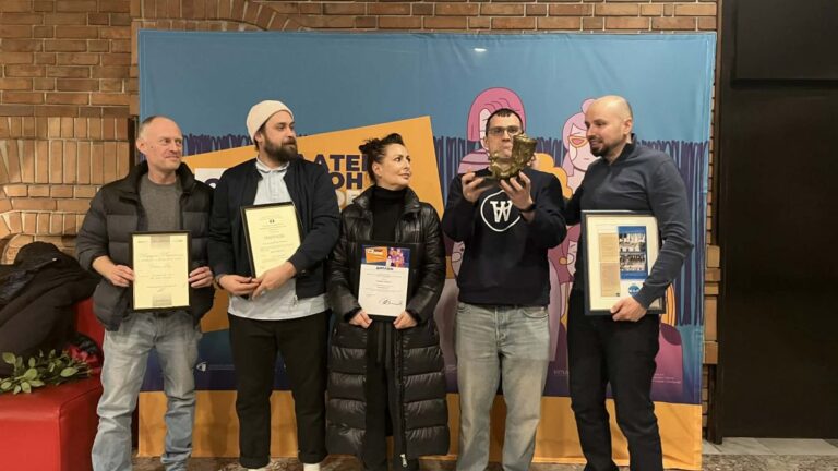 И голямата награда от Златен Ритон за най-добър документален филм отива за „Жестокият път“! Този път по-голямата част от екипа бяха на церемонията, за да получат и още две отличия (награда на критиката и награда Българската национална филмотека) на 29-ото издание на Фестивала за документално и анимационно кино „Златен ритон“. На снимката може да ги видите – сценаристите Елена Ермова,